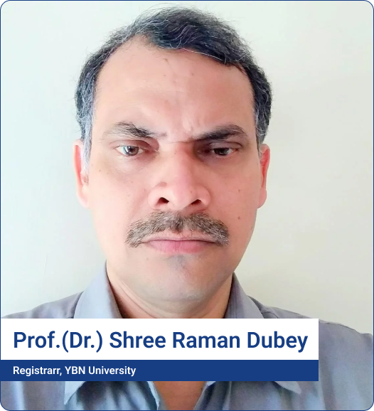 Education provides a key factor for the all-round growth of human society. However, for our country it’s of much more relevance if we are to capitalize on favorable demography, as dividend will be fully realized, only if we can create gainful knowledge for this working-age population. YBN University nestled in picturesque Chota Nagpur plateau is a fast growing young university of Jharkhand with a wide range of courses and state-of-the-art campus. We are committed to provide quality education to young formative mind with emphasis to nurture their mind so as to enable them to think critically, developing interdisciplinary collaborative skills with hands on engagement, with faculty and visiting eminent personalities, as a team work in a true Team YBN University spirit. Our strategy is governed by 4 major goals, excellent teaching, students’ satisfaction, outstanding research and social responsibility. Thus our academic curriculum is designed to ensure continued teaching, learning, research and innovation. Accordingly, we have established collaborative partnership with business, government, and other research institutions. Our endeavor and my personal commitment are to help our students to generate innovative ideas, knowledge and skills requisite for social benefits. This will ensure that they are not only good at academics, successful employable graduates and successful entrepreneurs, but also become responsible citizens with high ethics and social conduct. We look forward to welcoming you to the YBN University, Ranchi and be part of our Team YBN University.